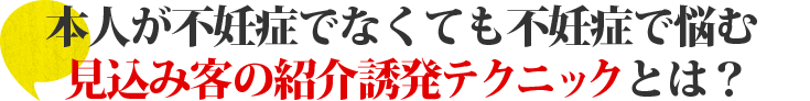 不妊症で大きく成功するポイントは、不妊症で悩んでる方に来てもらうだけでなく、不妊症でない方からの紹介を誘発することもスピードアップに活用できます。そのテクニックを紹介します。