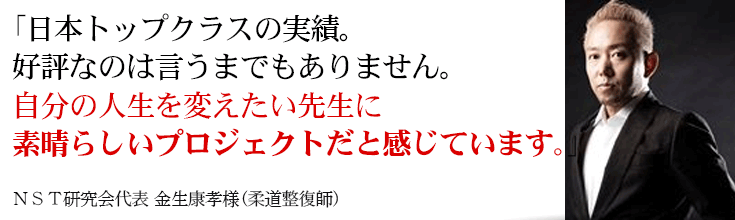今回、新しいプロジェクトが始まりますが、中野先生のように悩める方の人生をも診れる施術家になりたい先生、施術家として自分の人生を変えたい先生は、是非、中野智彰という一人の存在に触れてみて下さい。