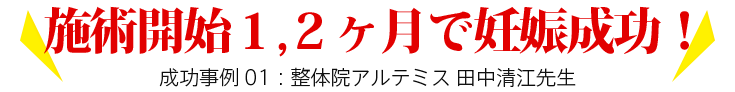 36歳。結婚4年目で昨年末にようやく着床したが10週で流産されたとお悩みの方がおみえになり、週一の施術を2ヶ月ほど受けていただいた結果、妊娠され現在14週目で経過は順調です。
