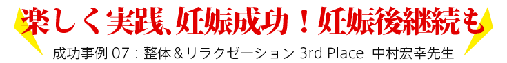 前回のセミナーでは、懇親会中に受講生の携帯メールに「妊娠しました!本当にありがとうございます!」とお客さんからのメールが届いて受講生のみんなで喜びあいました。