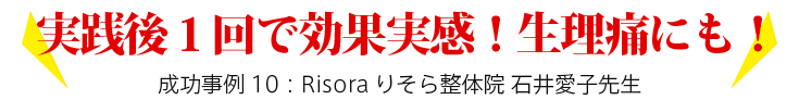 セミナー後、実際に施術をしてみると早い方ですと1回の施術で効果がありました。 生理痛などは、2,3回でなくなっています。
