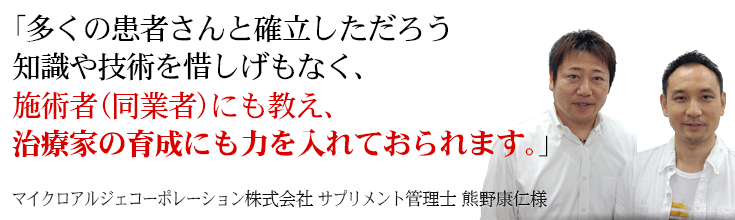 また、指導者としても、その知識や技術を惜しげもなく、施術者(同業者)にも教え、治療家の育成にも力を入れておられます。そして、最大の魅力は、直向きな向上心と柔軟な思考力と感じます。